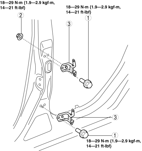 - Removing the rear door without supporting it could cause the rear door to fall and cause serious injury. Always perform the procedure with at least another person to prevent the rear door from falling.