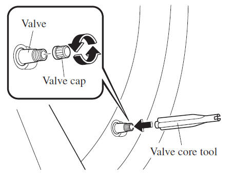 If there is air remaining in the tyre when the valve core is removed, the valve core could fl y out. Remove the valve core carefully.