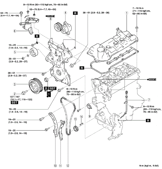 - Install the cylinder head cover before the applied sealant starts to harden.